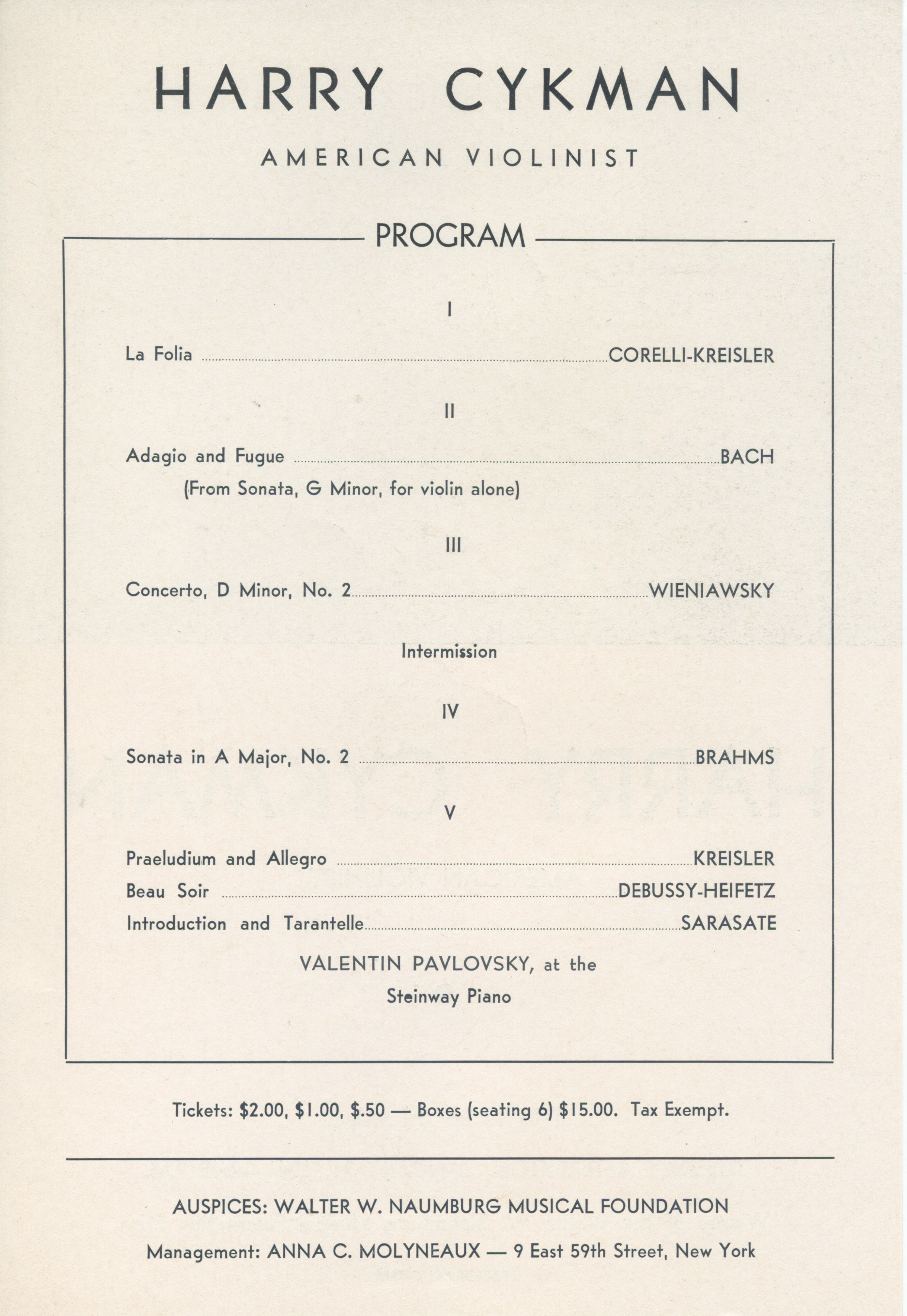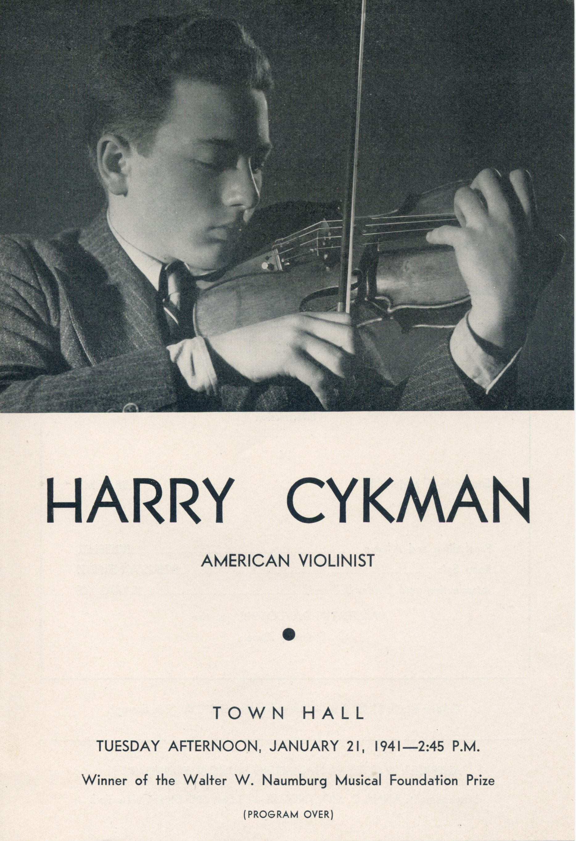 Harry Cykman was a child prodigy, making his violin debut in 1930 at age 9. He was a winner if the Naumburg competition in 1940. In 1942, he played a minor role in a stunt for the radio game show "Truth or Consequences." He played classical music on local New York radio stations and at Carnegie Hall.